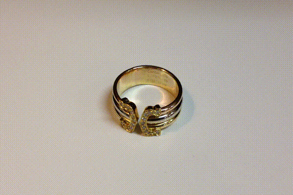 写真は複雑な構造の指輪Cartier カルティエ C2 ダイヤリングのサイズを49から54にアップするご依頼でした。K18YG&PG&WGの三色の金で、ダイヤモンドが両サイドに固定されている指輪です。金それぞれの素材を正確な形状でパーツを作りロー付け加工、仕上げ加工は全体像を確認しながら微妙な乱れを修正し、最後に全体を研磨して完成させました。宝飾の修理事例を見る