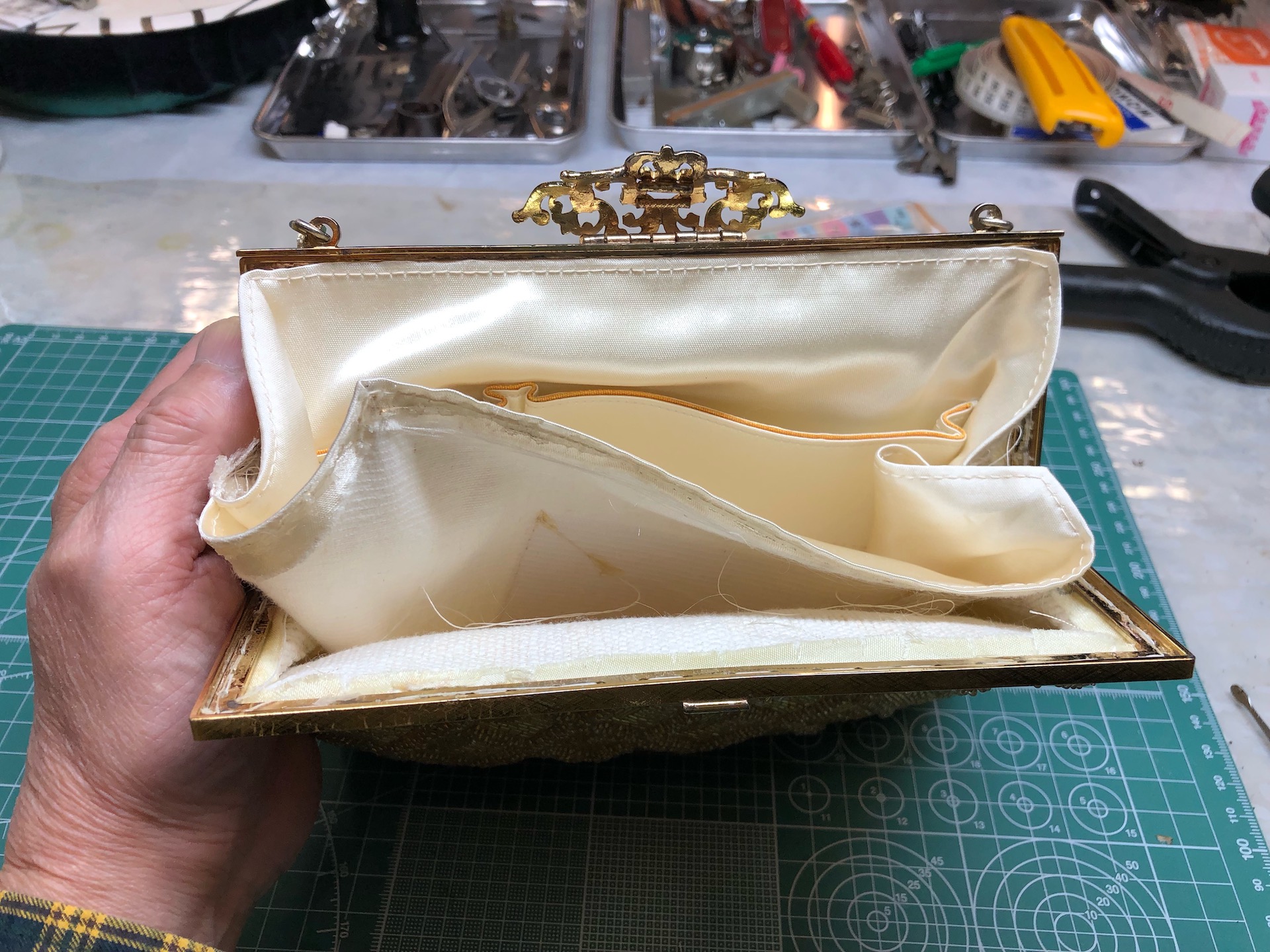 50年前に作られたビーズバッグの内部リフォーム&金具交換修理です。