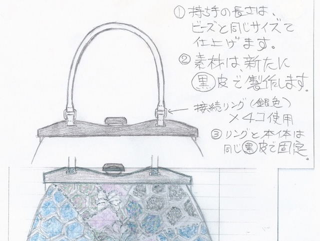 昨年3月にお預かりした40年以上の前のビーズバックの改造。
