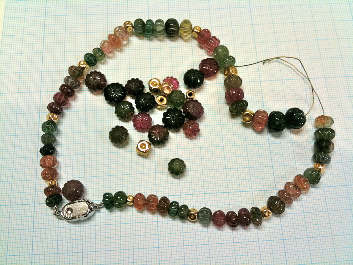 まず、どうして切れたかを確認し、しかも長さ分のビーズが有るかも調べる。