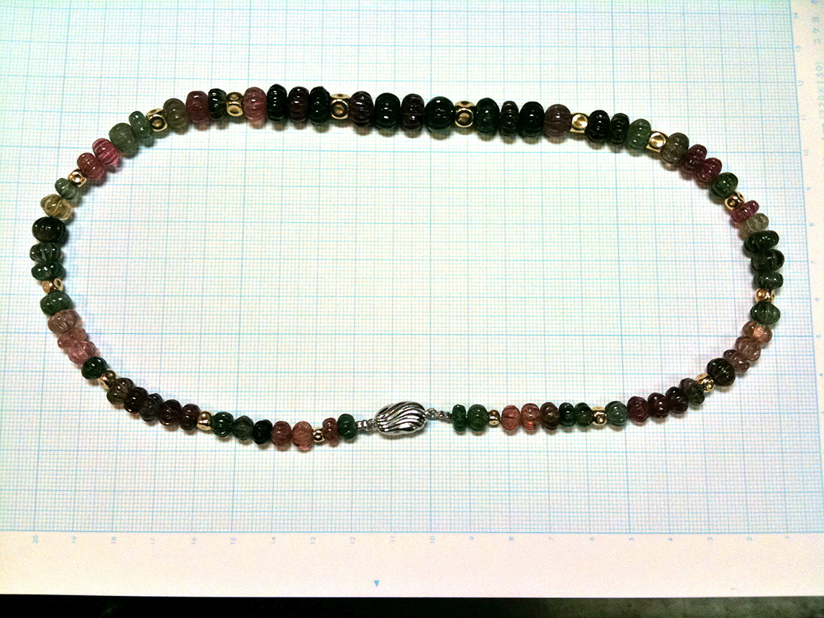 切れてバラバラになったビーズの大きさをすべて調べて、組み立て直しました。