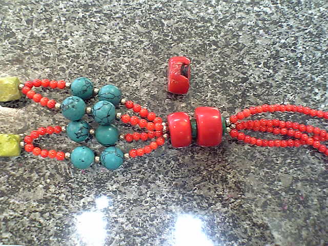 ビーズ固定用の複数の糸の劣化で、ところどころ抜けていました。その部分を直しても、またいつの日か別な所が切れそうです!