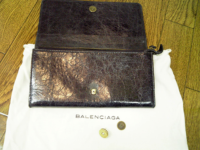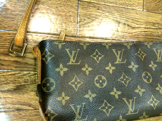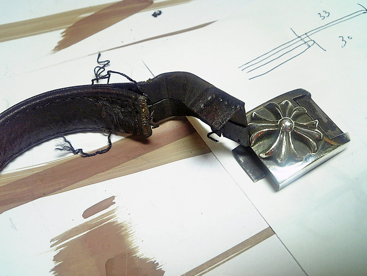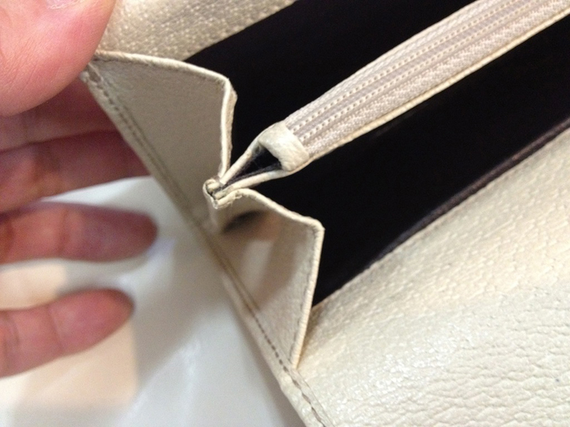 金具両サイドの皮革の劣化で切れた部分の修復。