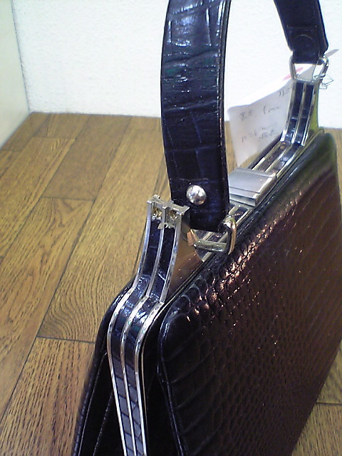 持ち手につながる金具の補修&修理! この修理はデザインなどをどうしていいか悩みました。 幸い?穴が開けてありましたのでそれを使う事に。 最後に当店在庫分の皮革を綺麗にカットして完成させました。