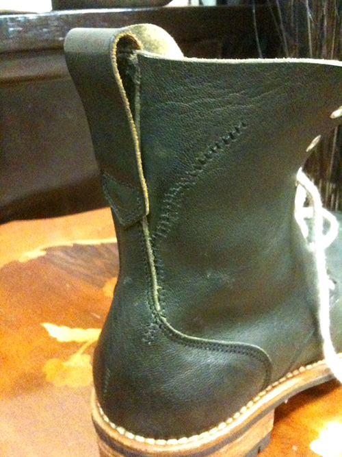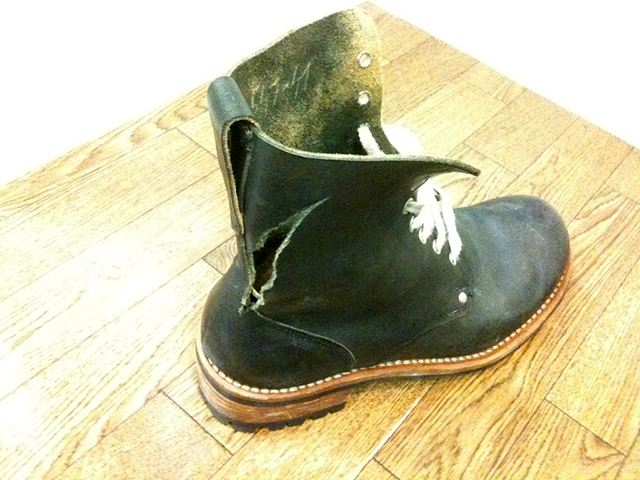ブーツ本体内側の鹿革の処理やファスナーの件や、スタック本体までかじっていますので、