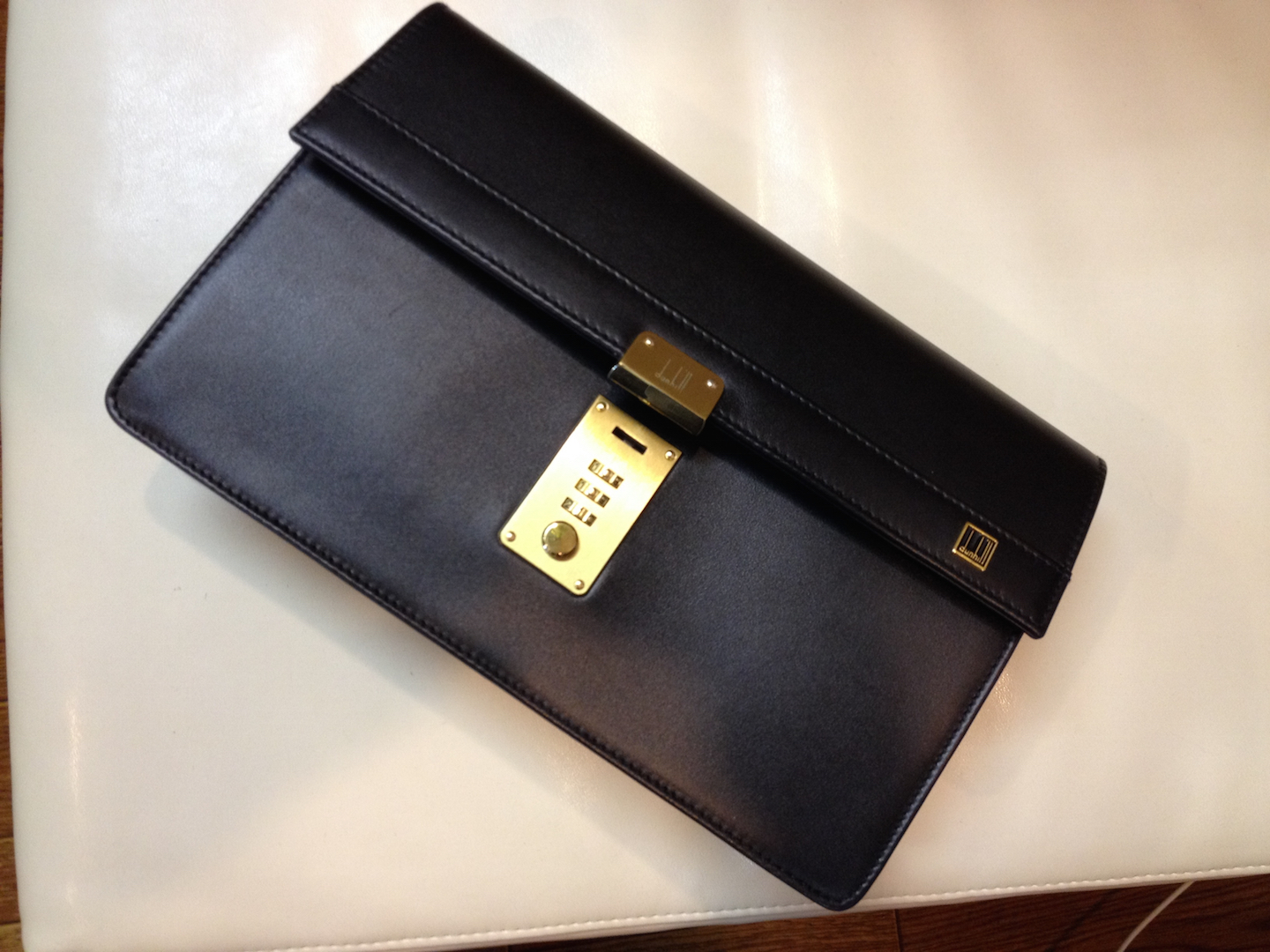 車内に置き忘れて高温で歪んでしまったそうです。 本体を分解し各層の素材ごとに歪みを確認し加工ながら、全体のずれが無い事を確認し接着&プレスで数日固定。 その後縫い目がずれない様に一コマ・一コマ手縫いで再縫製し、最後にコバ全体を塗り直して完成です。