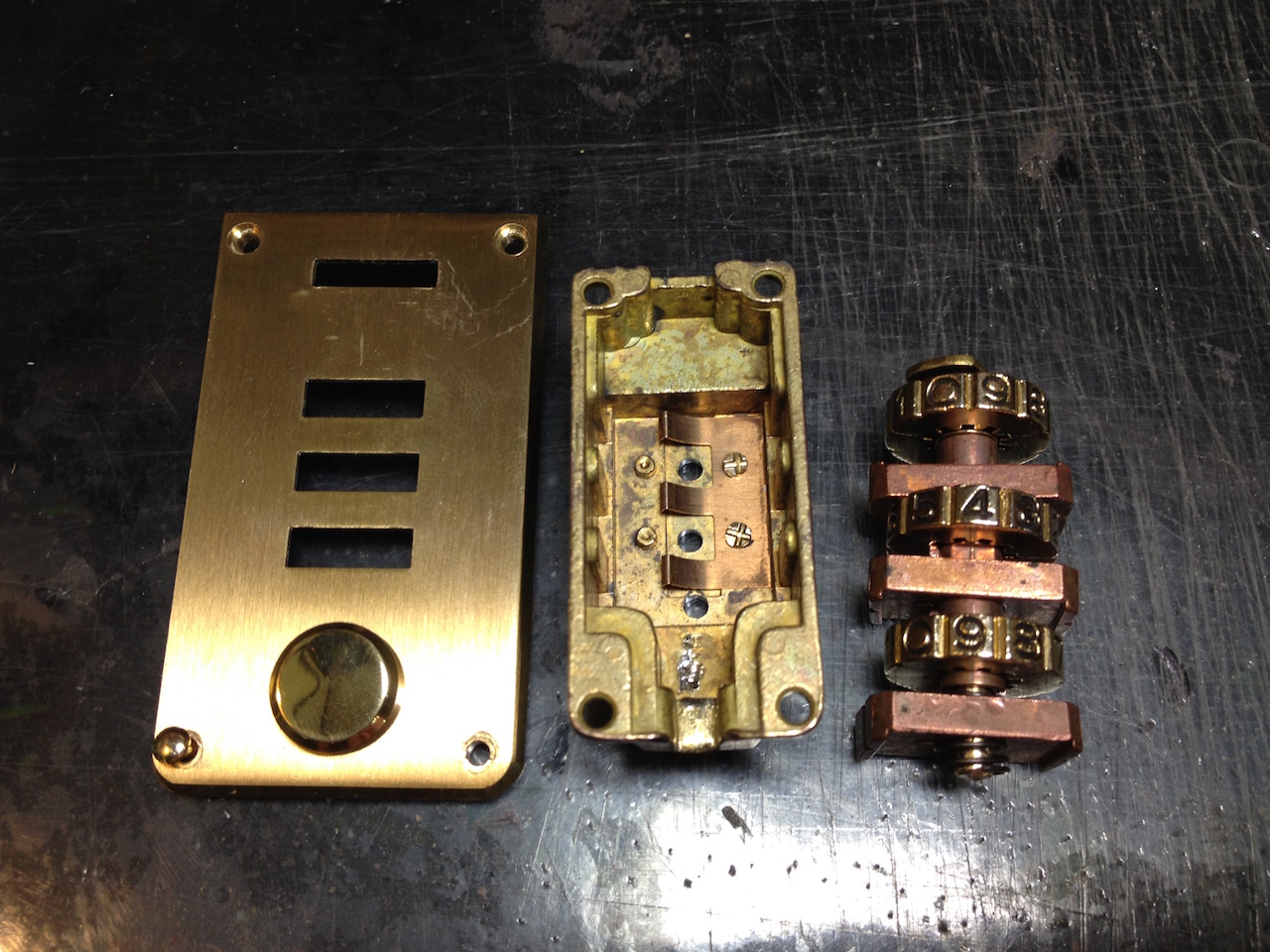 後日、組み立てが出来る様に作業をしなければなりませんし、鍵の構造を変える為、慎重にすべての部分を分解し、細工をいたしました。