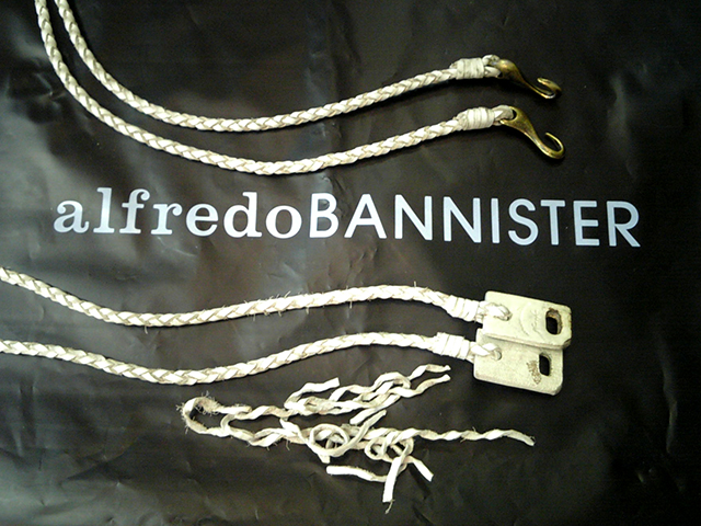 切断されたサンダル革ベルトの修理を行いました。